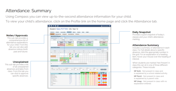 The Grange P-12 College allows parents to view attendance information for your child. Parents can report student absences which is reflected in the attendance summary.